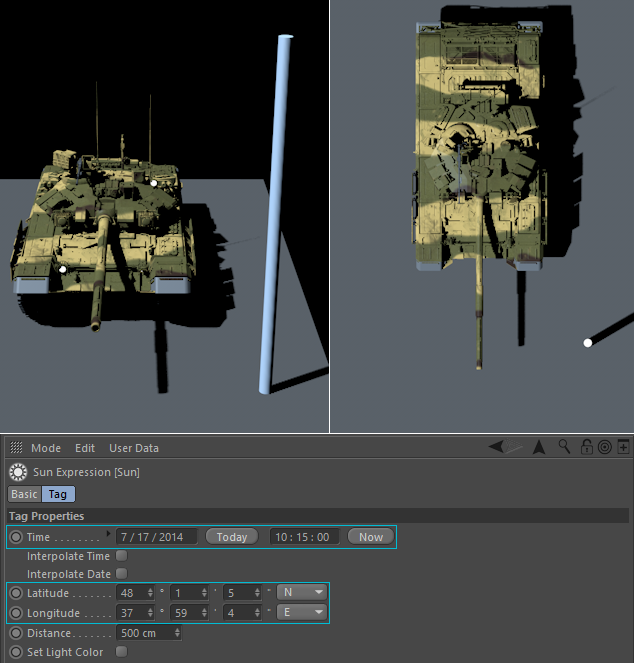 In an article about the photos and in the description of Picture 6, it was shown how you can take parts from one Buk and put them on another with Photoshop. However, probably a better way to make such fakes is to use a 3D rendering software and to buy (and modify if needed) good quality 3D models of a truck and of a Buk launcher, of which there are plenty on the internet, to then place the Buk on a truck inside a 3D program, apply fisheye effect either in the 3D software or elsewhere, render the vehicles, and in Photoshop, use the rendered Buk as the target for the extracted, say, Russian Buk’s parts. There are many advantages to this method. It allows you to create a photo of a truck and a Buk at any needed angle, set up proper lights and reflections for the vehicles for any environment, most importantly, it allows you to create sun shadows for the vehicles for any location in the world and for any date and time (see this example).
