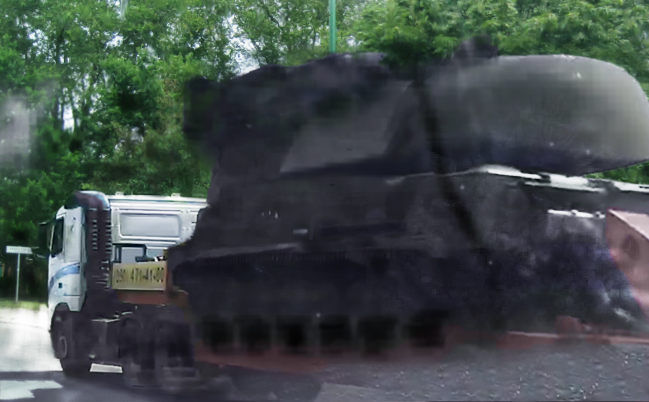 Just like all the previous Buk materials, the video is of low quality. You can’t even see the number plates of the vehicles from the column. Most of the Buk’s details are also hidden by the shadow and the video’s bad quality. This is convenient, because otherwise if we wanted to insert a specific Russian Buk, we would have to adjust the 3D Buk model to show all of the unique details. And if the vehicles in the column are actually 3D models, what numbers would you use for them?